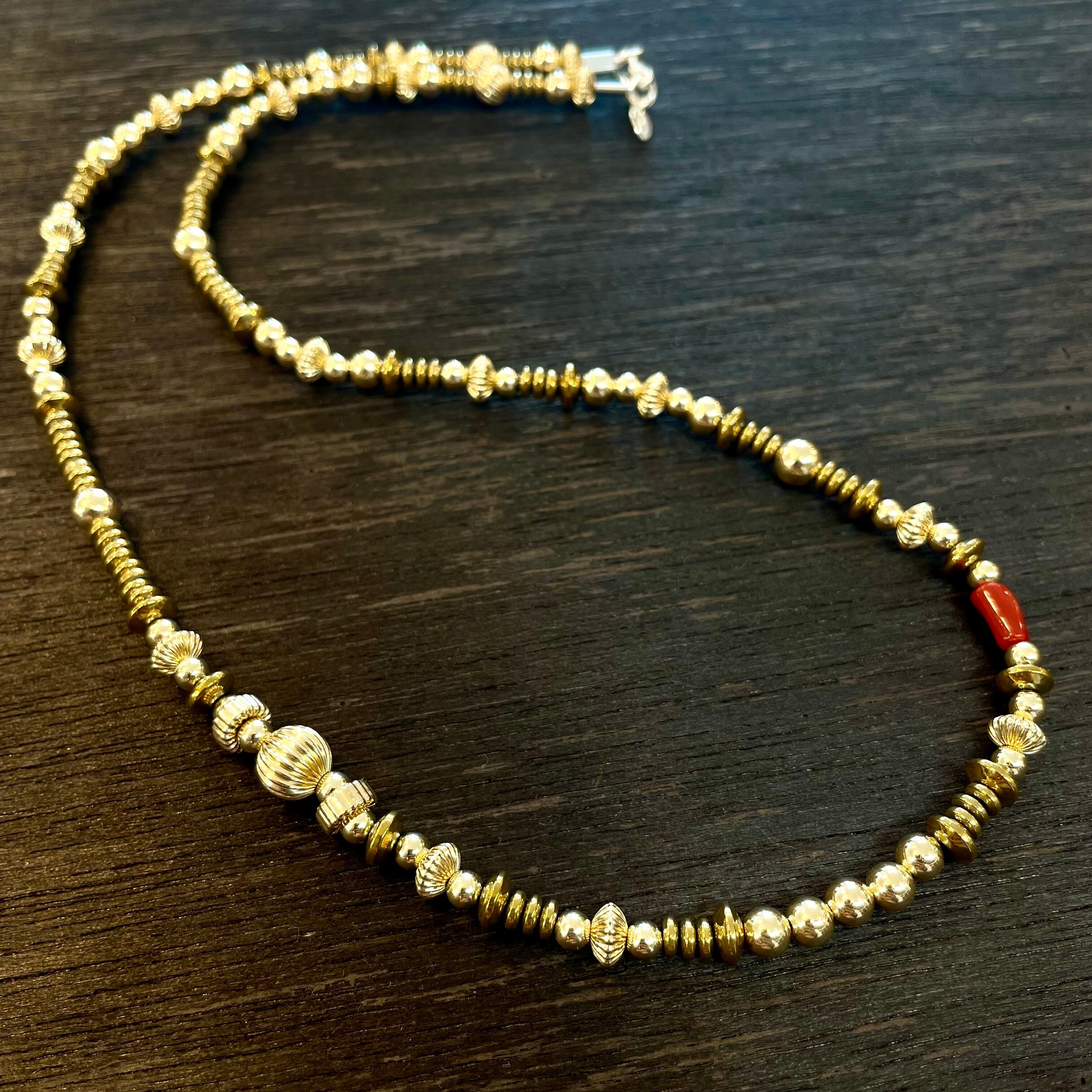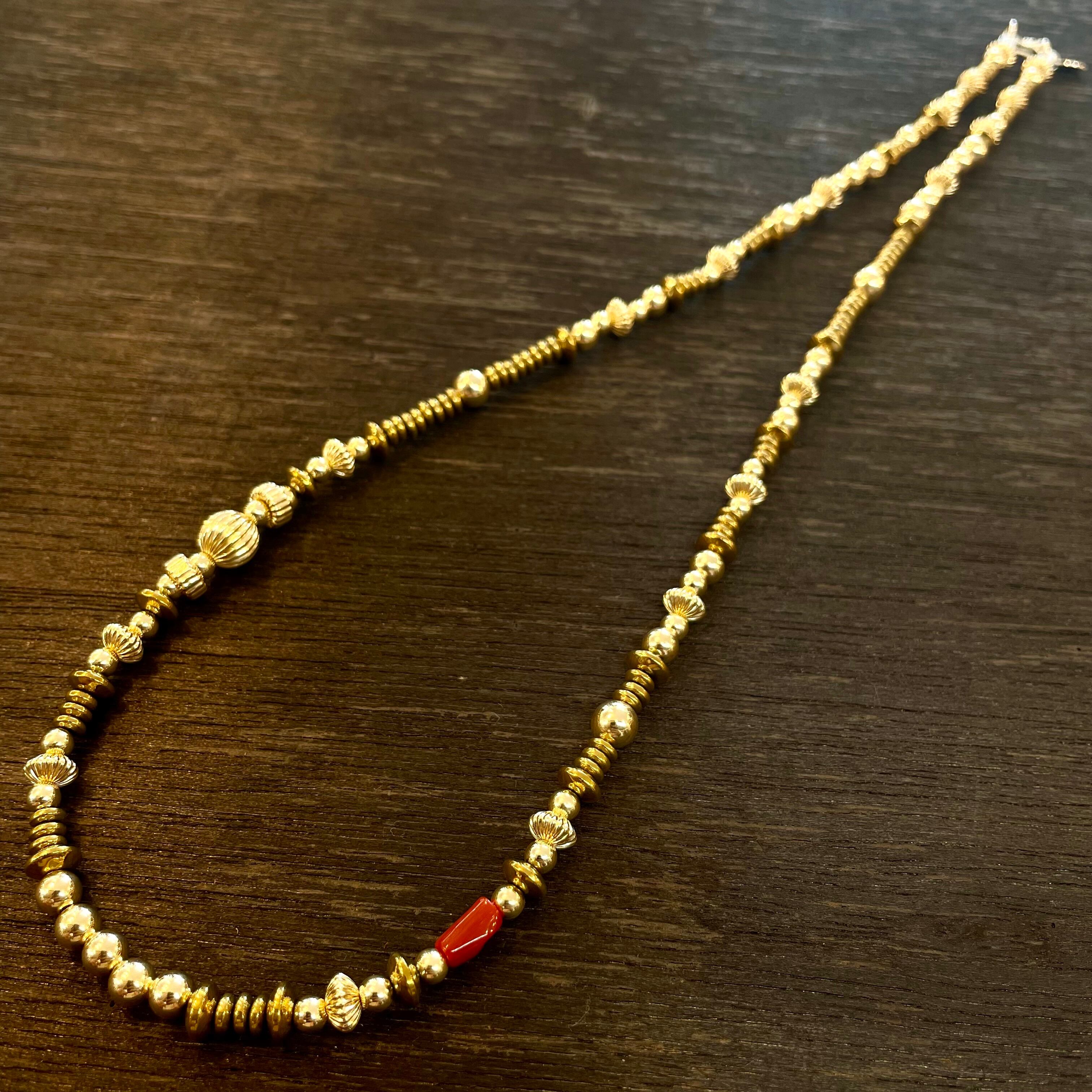 ナバホパールに、シルバービーズ、ターコイズビーズ、コーラルビーズ