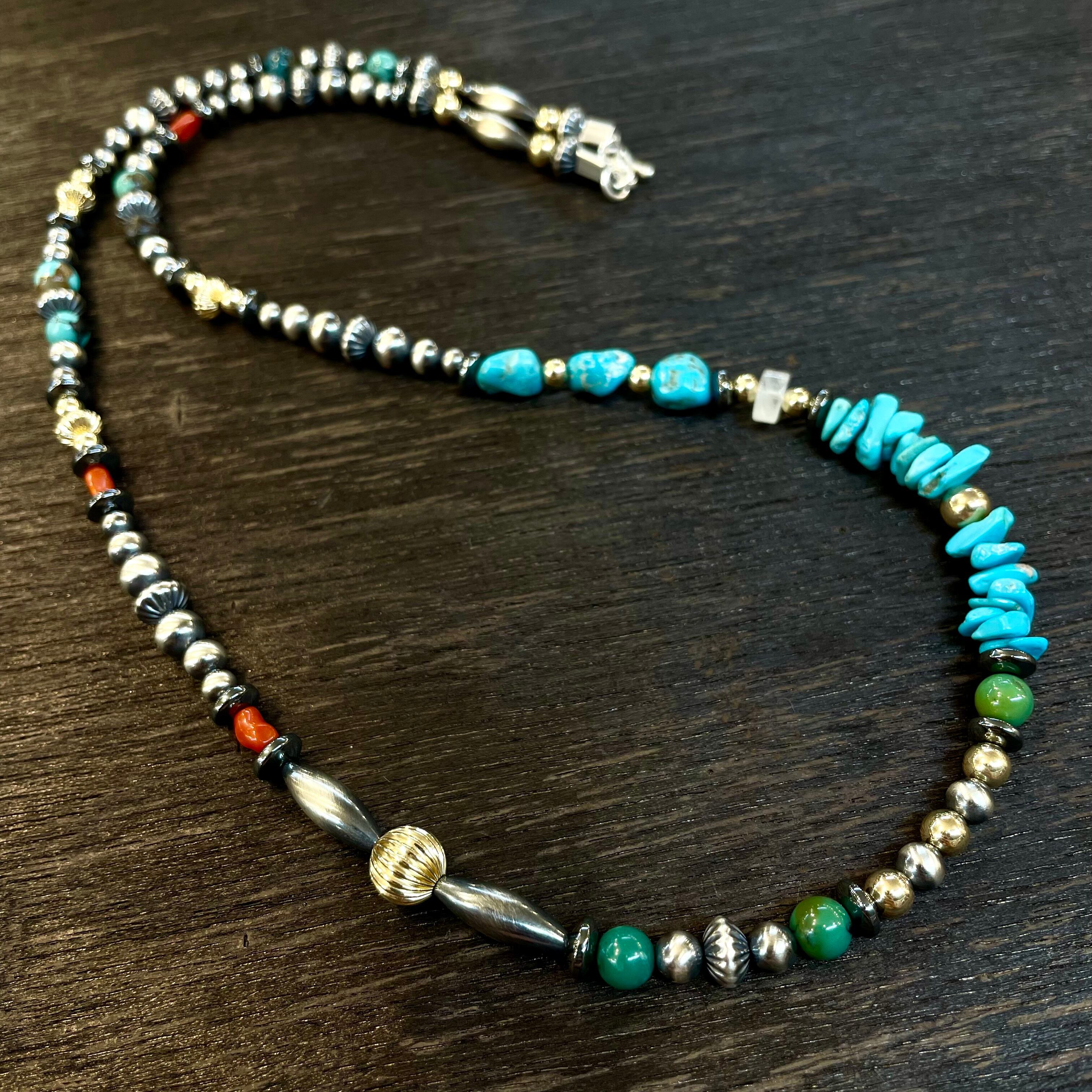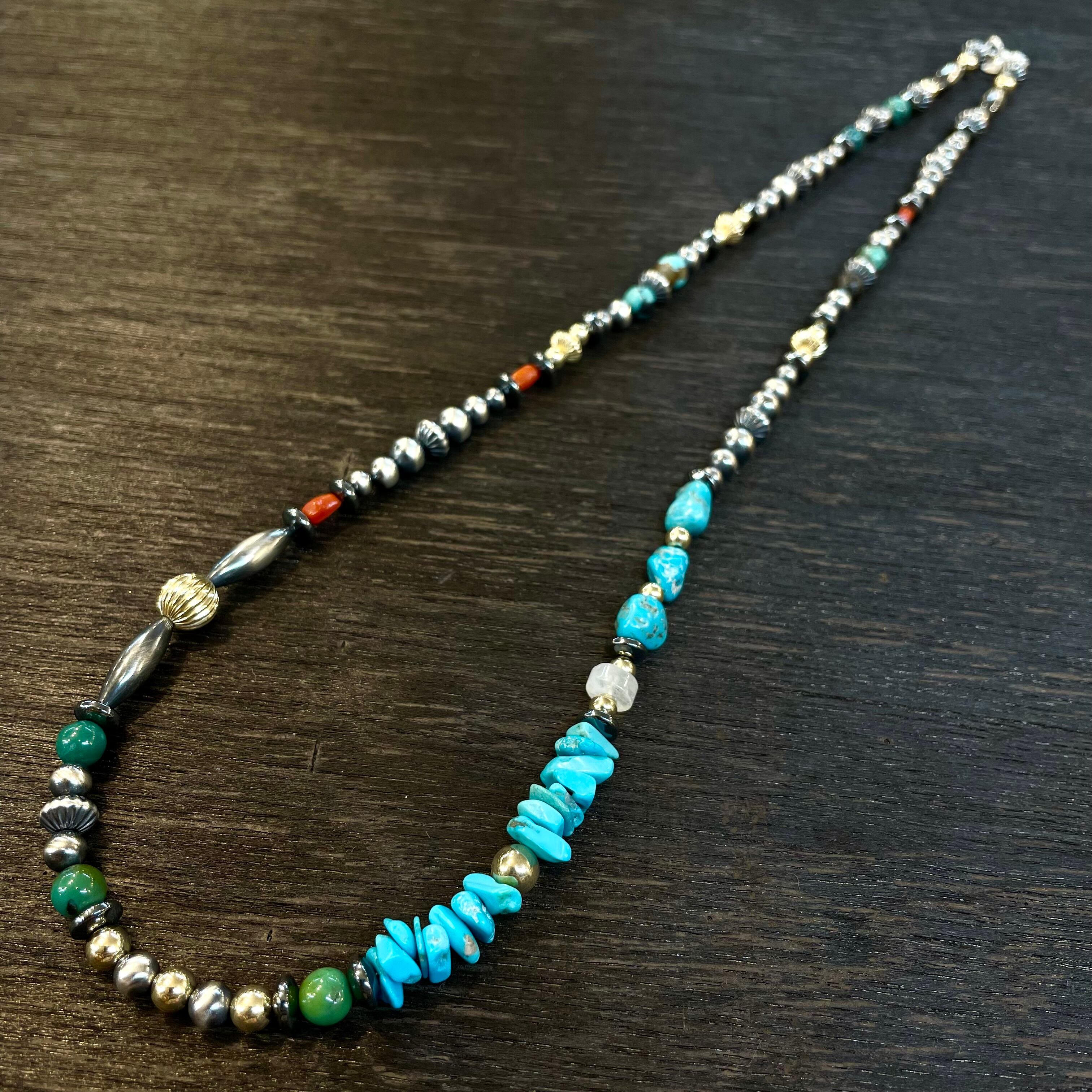 ナバホパールに、シルバービーズ、ターコイズビーズ、コーラルビーズ