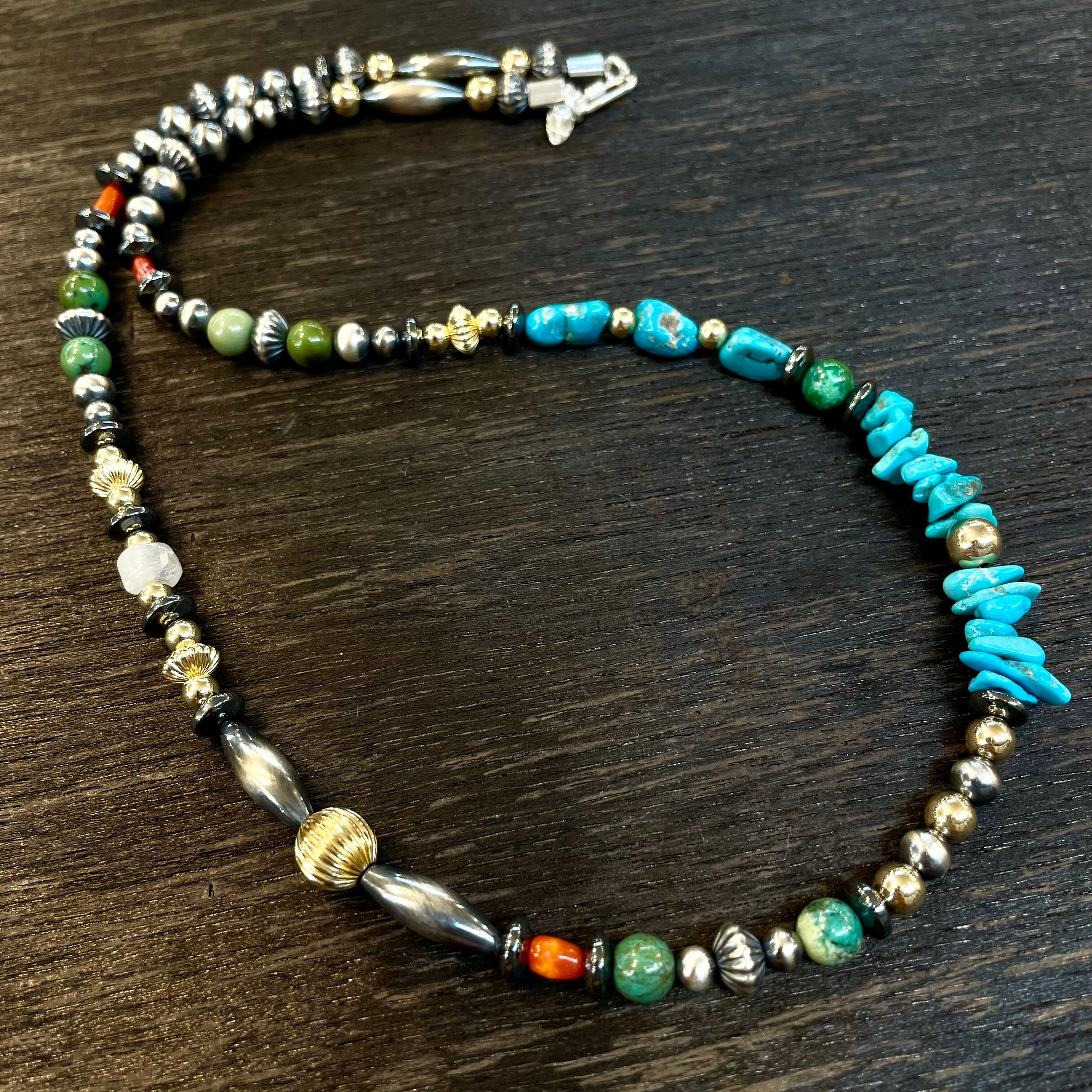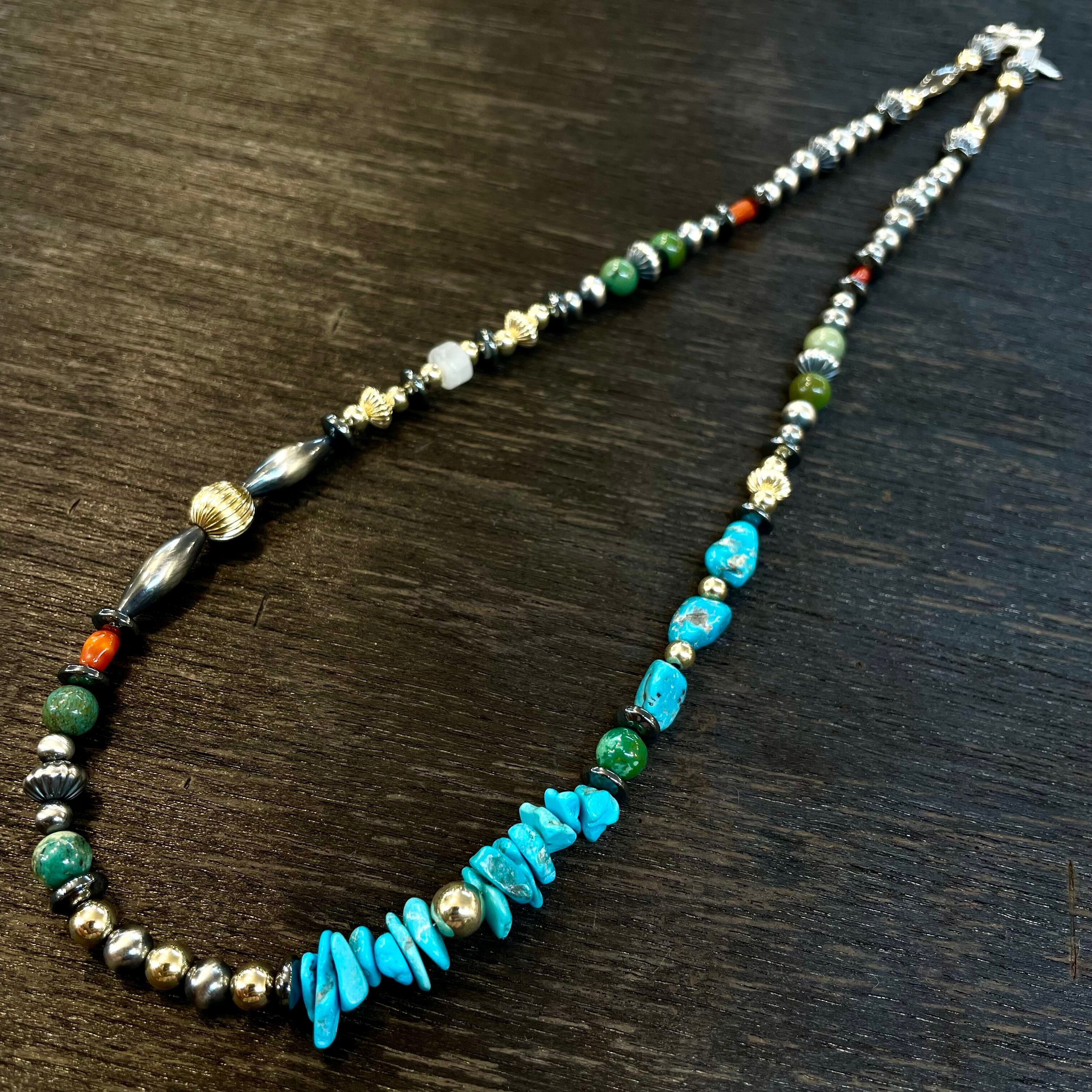 ナバホパールに、シルバービーズ、ターコイズビーズ、コーラルビーズ