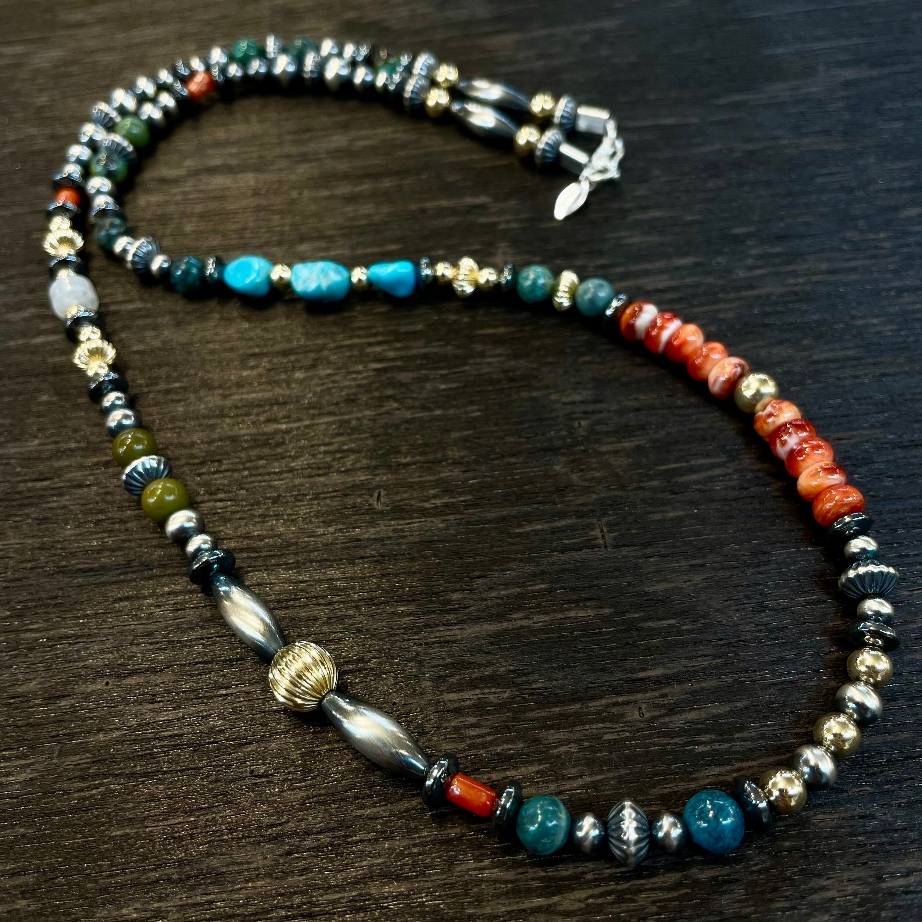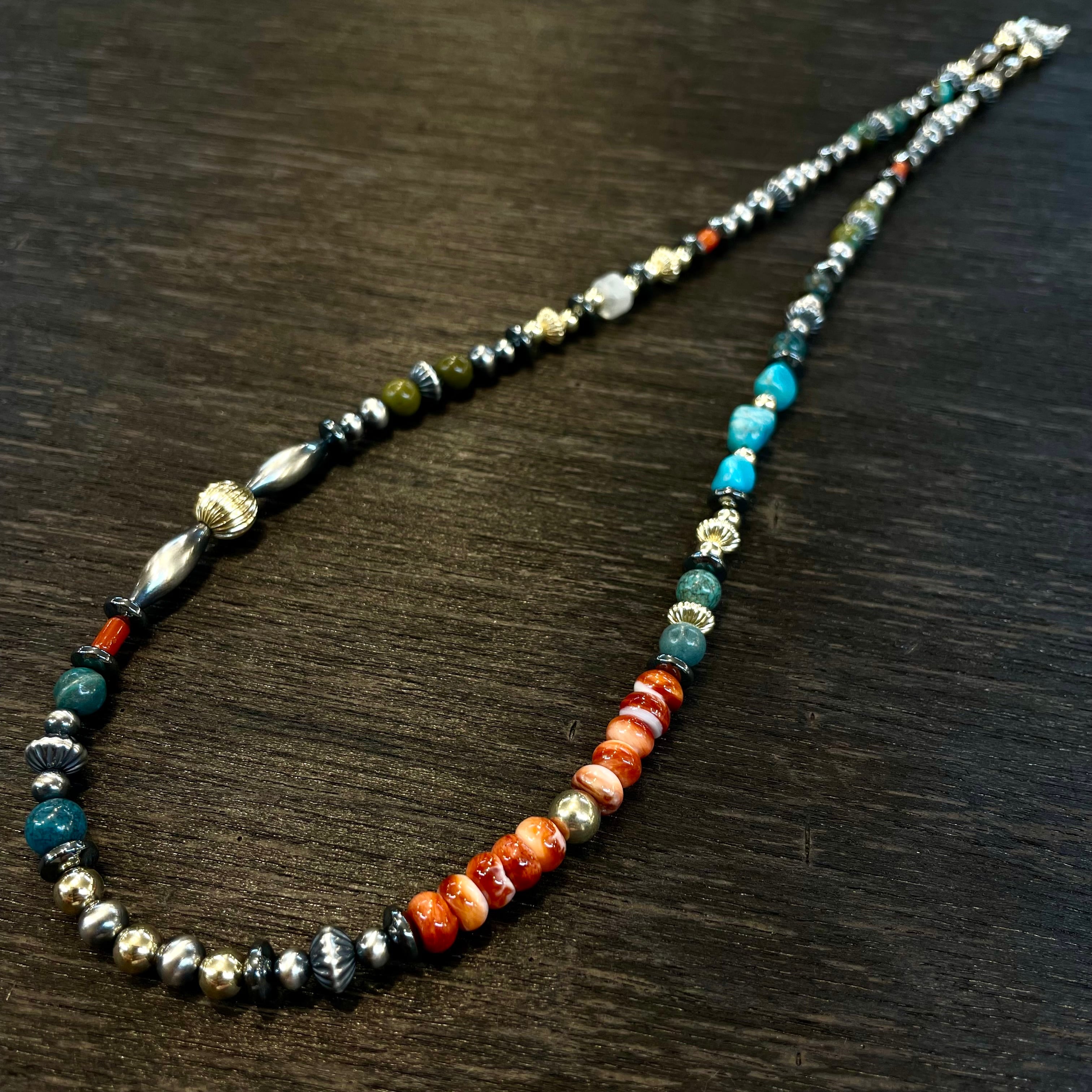 ナバホパールに、シルバービーズ、ターコイズビーズ、コーラルビーズ