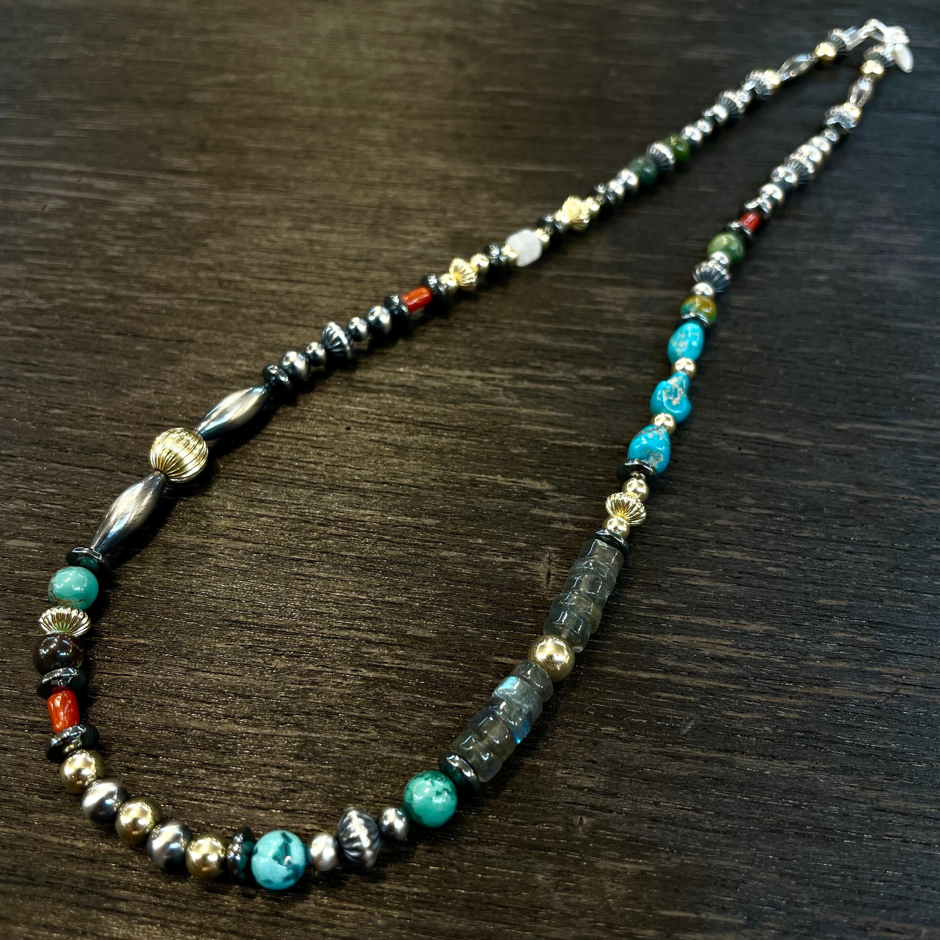 ナバホパールに、シルバービーズ、ターコイズビーズ、コーラルビーズ