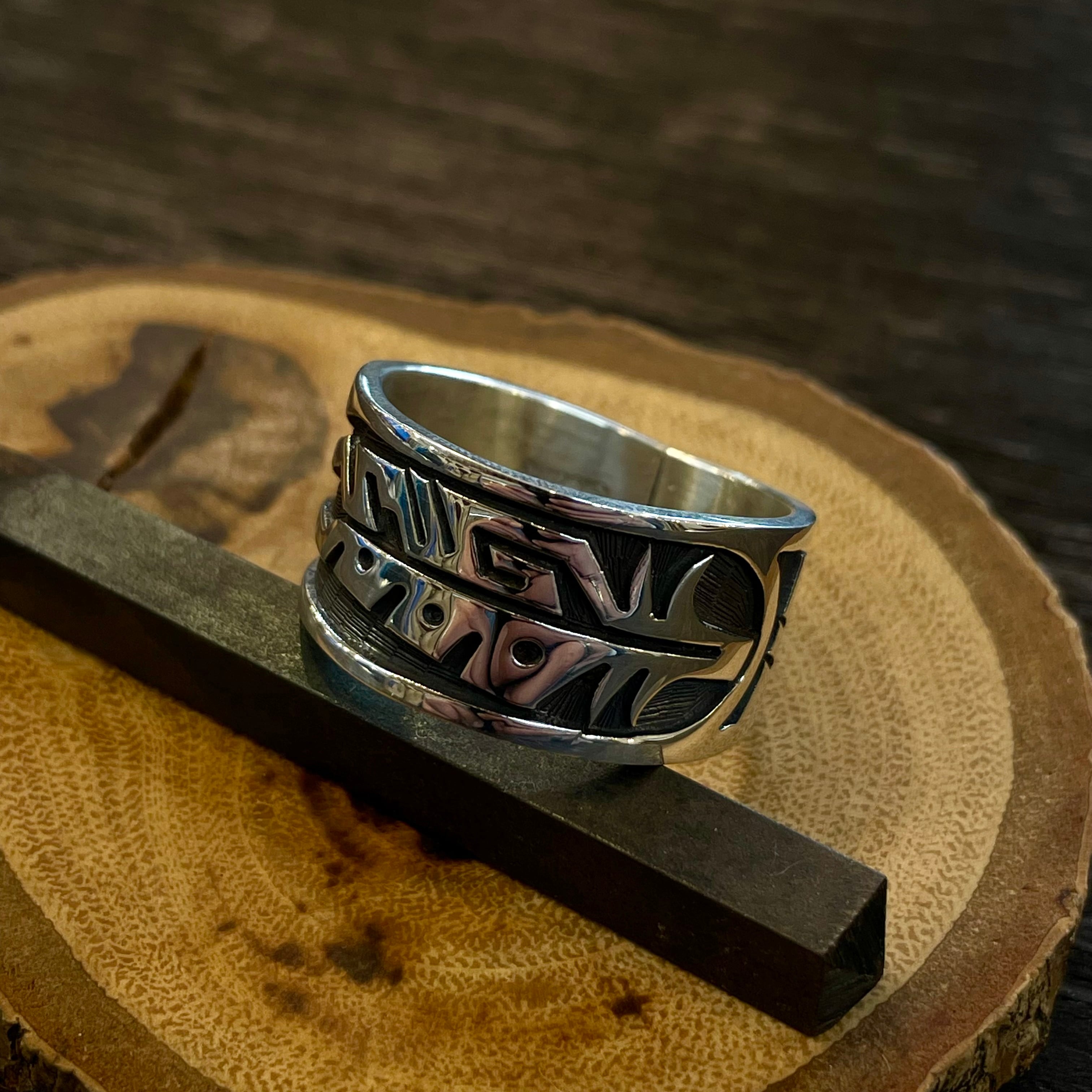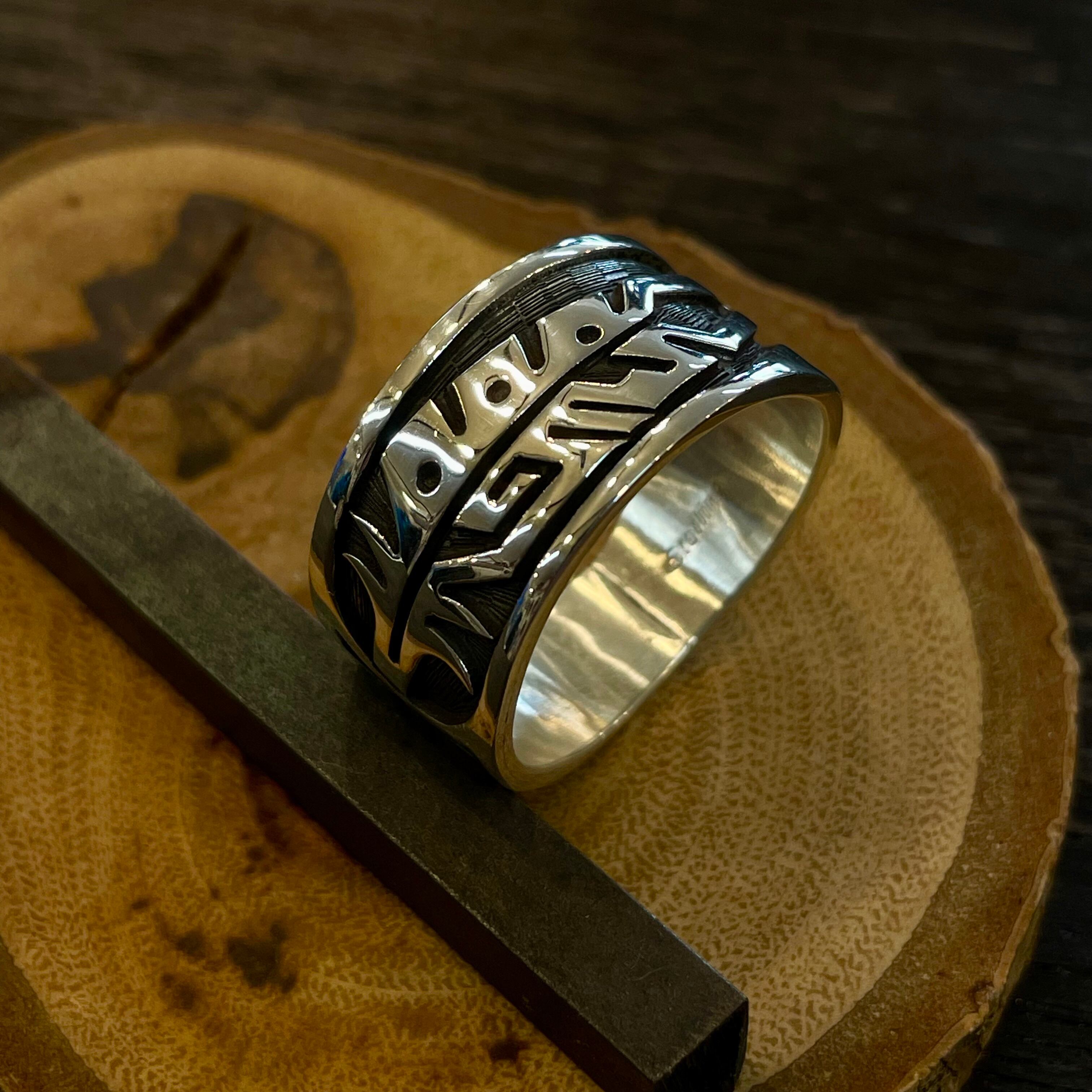 リングの半分をフェザーで仕上げているので存在感ありますよ‼️