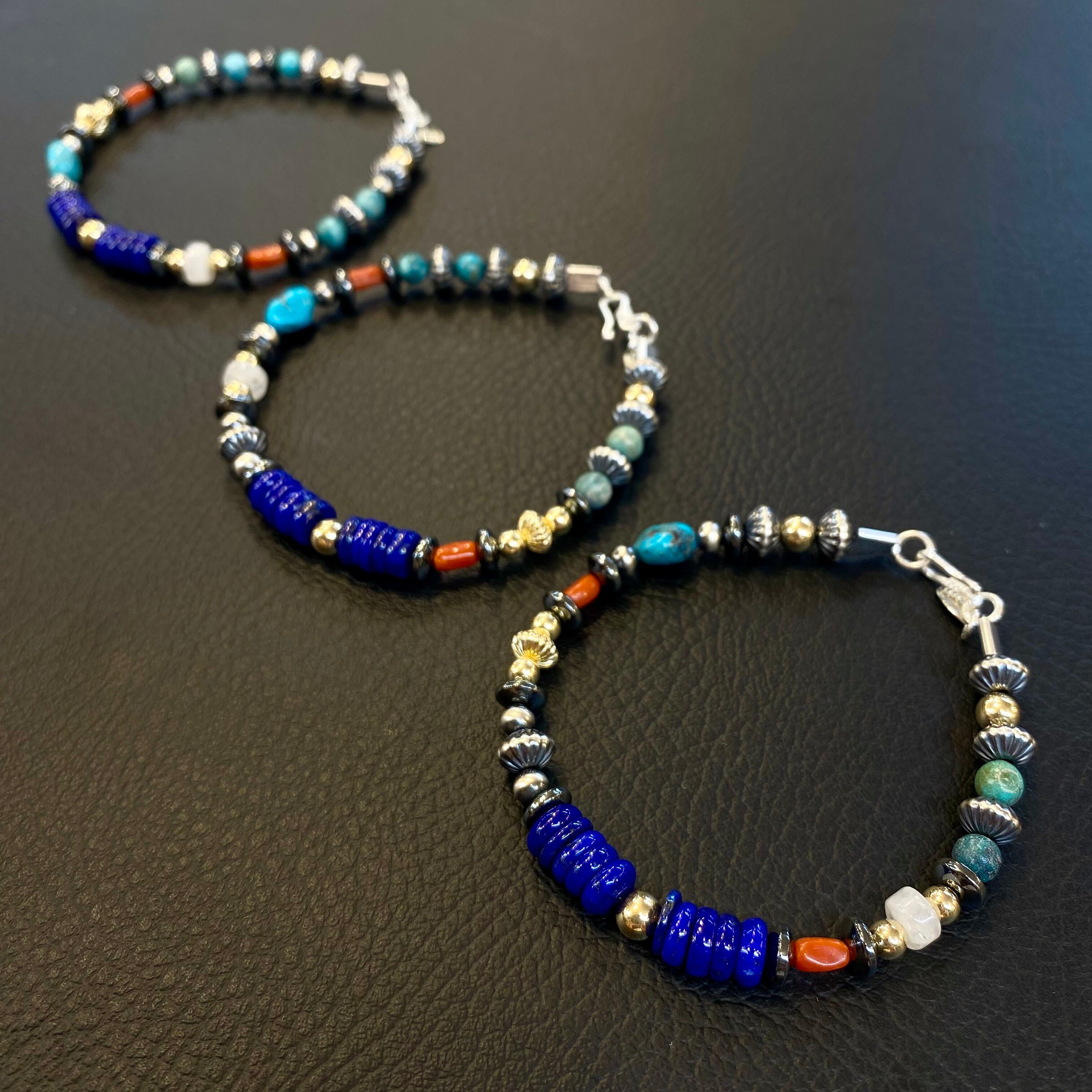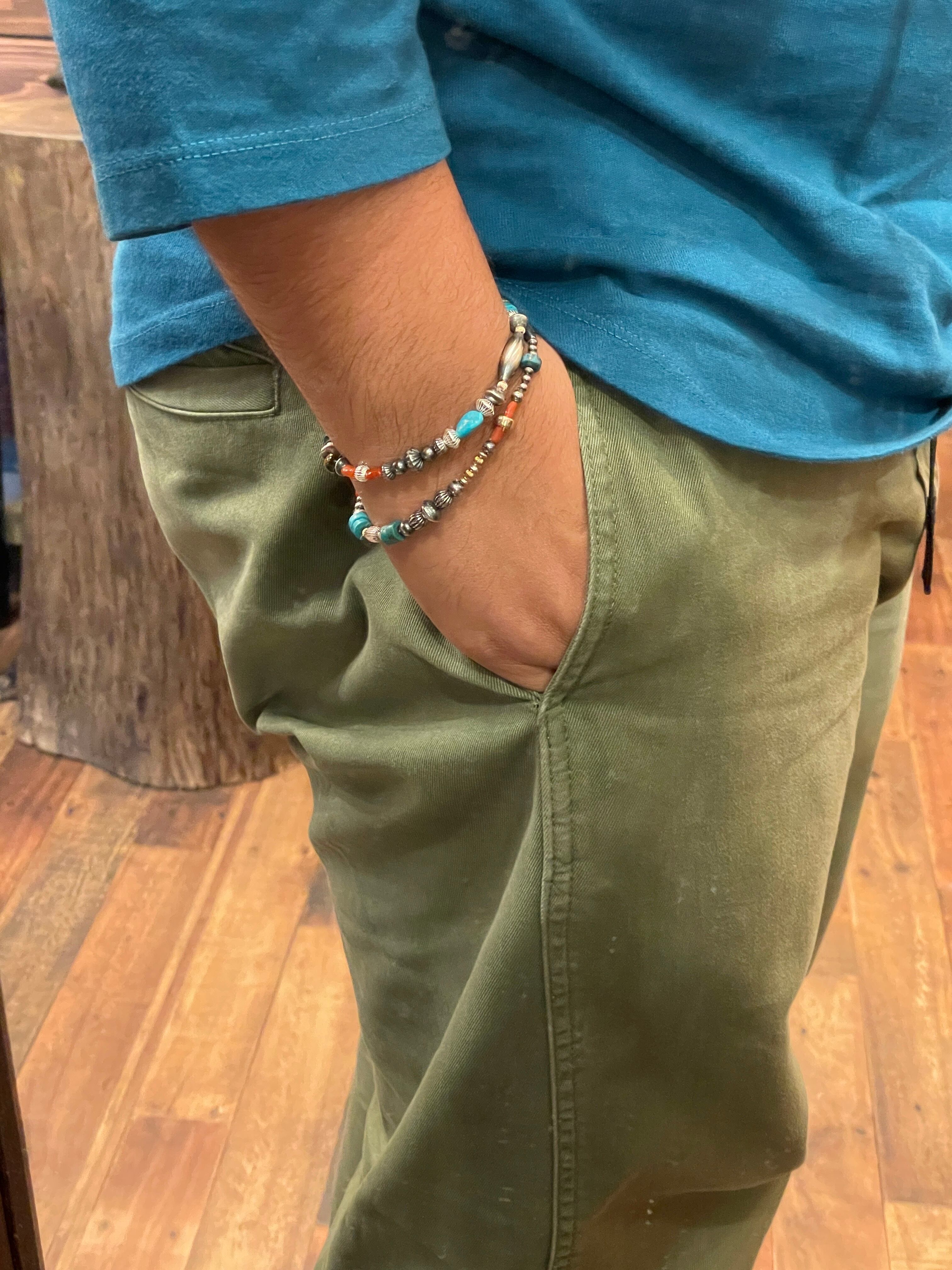 ナバホパールに、シルバービーズ、ターコイズビーズ、コーラルビーズ