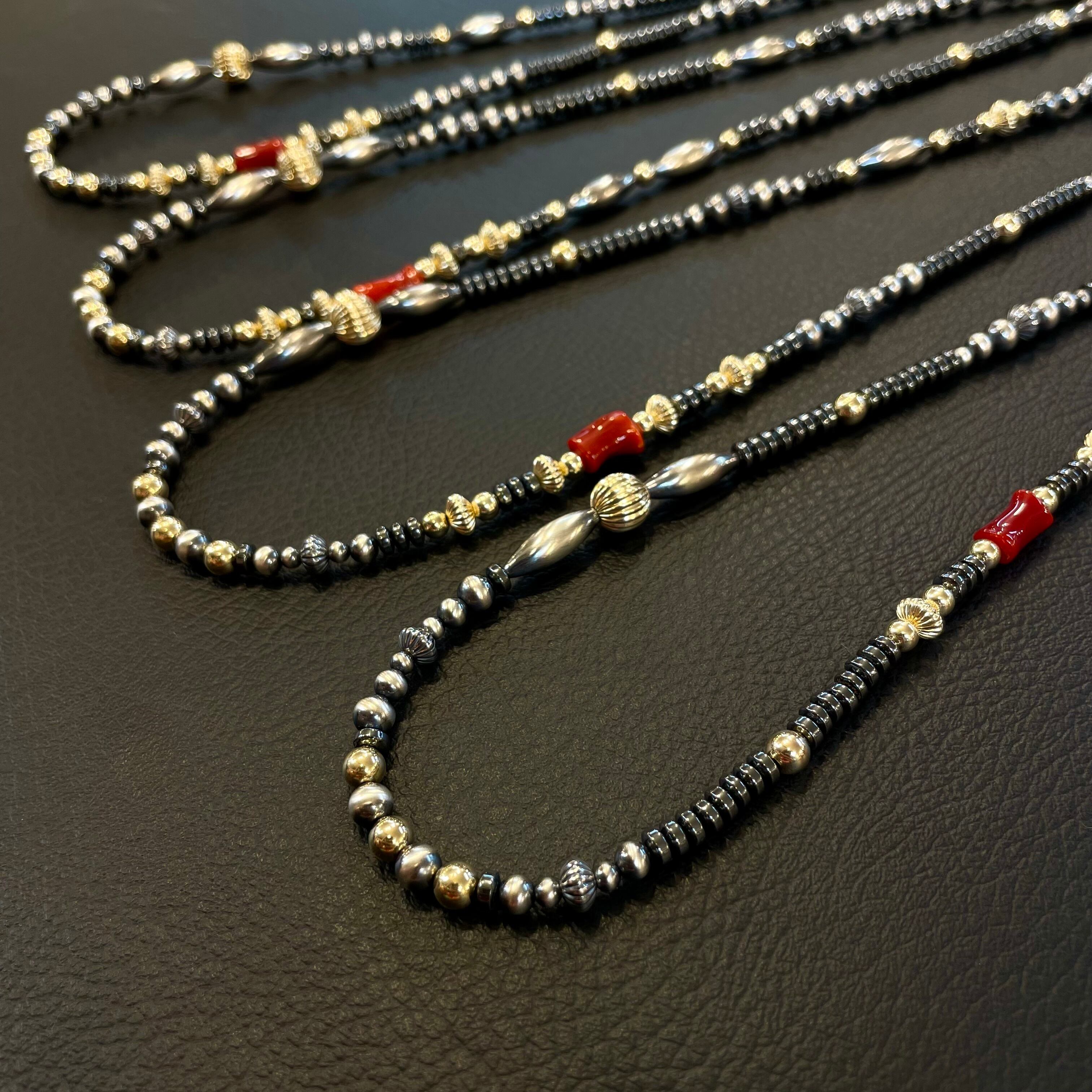 ナバホパールに、シルバービーズ、ターコイズビーズ、コーラルビーズ