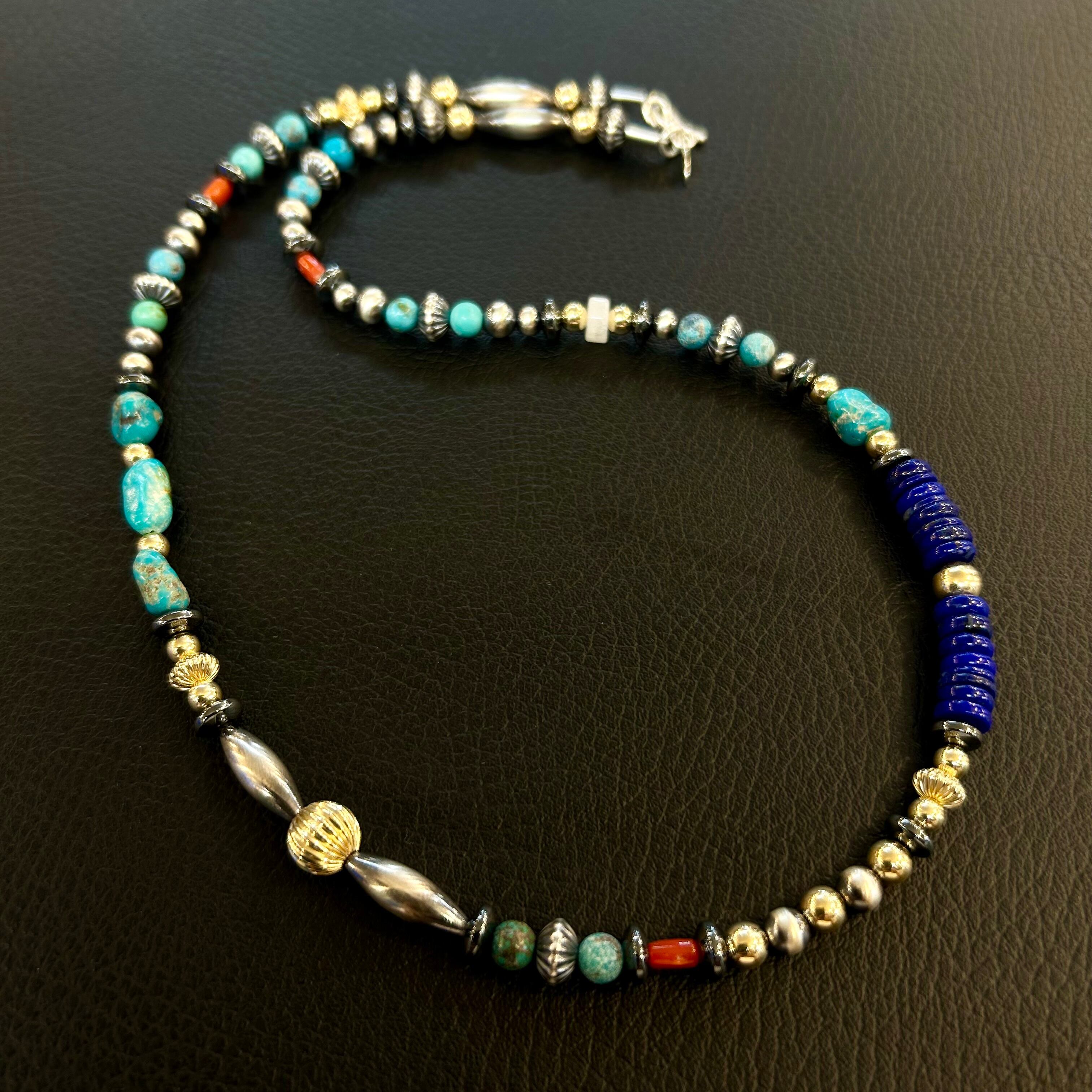 ナバホパールに、シルバービーズ、ターコイズビーズ、コーラルビーズ