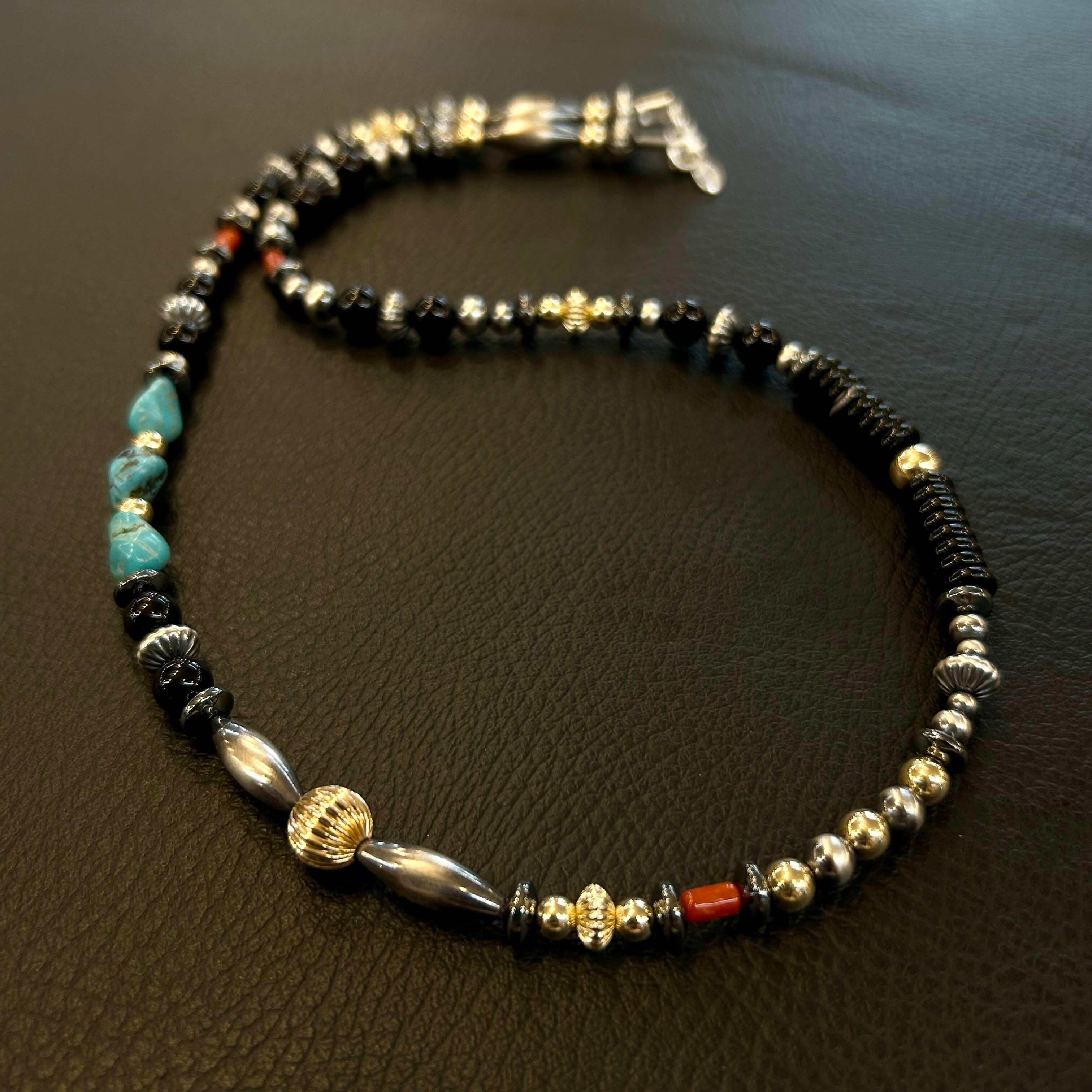 ナバホパールに、シルバービーズ、ターコイズビーズ、コーラルビーズ