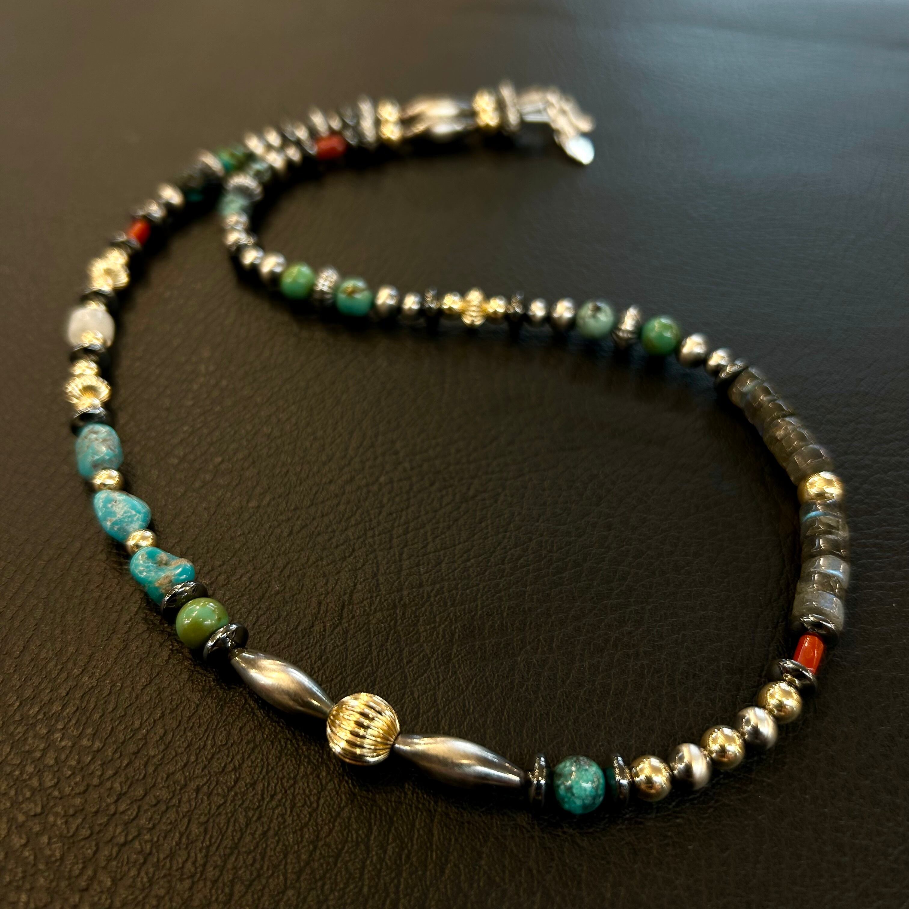 ナバホパールに、シルバービーズ、ターコイズビーズ、コーラルビーズ