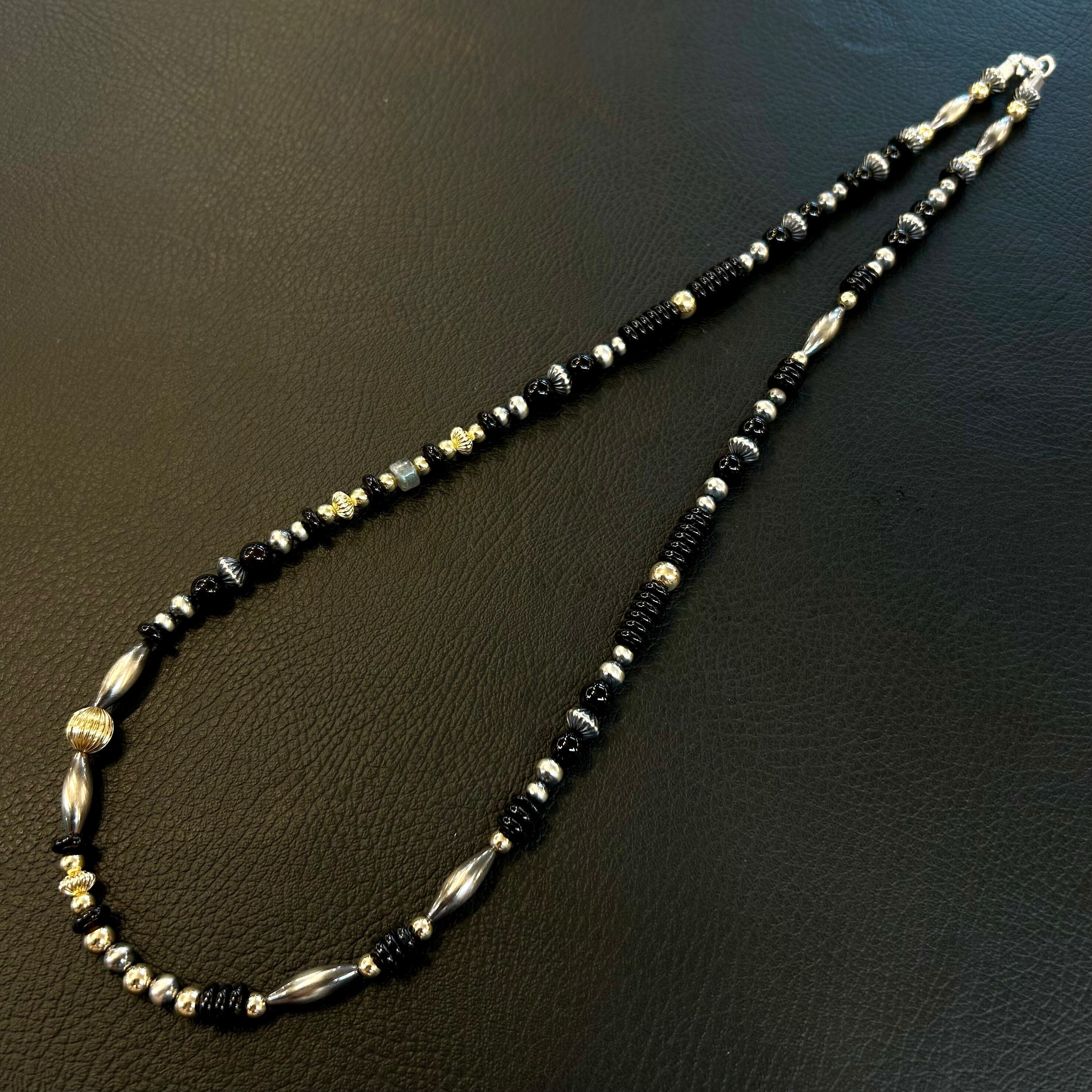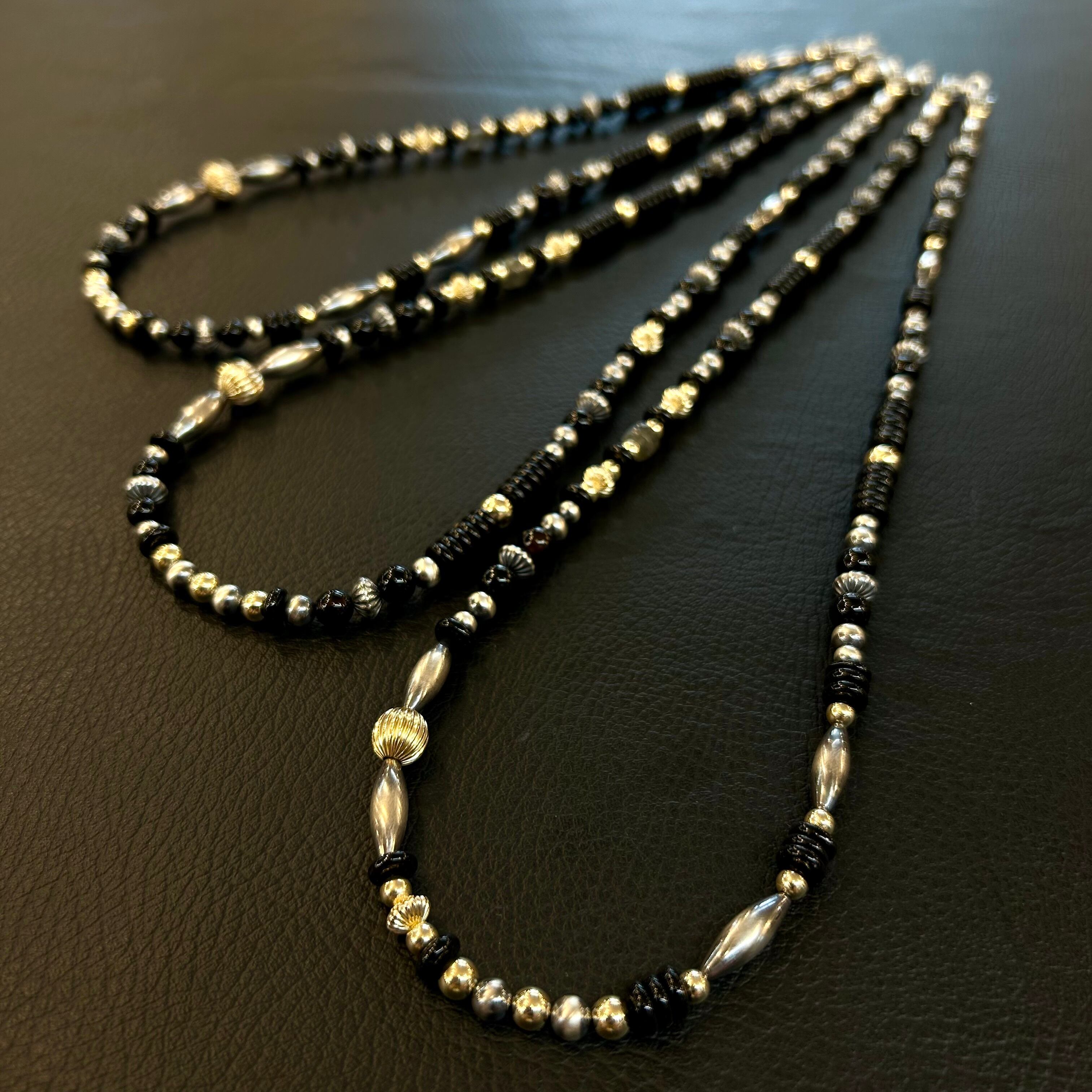 ナバホパールに、シルバービーズ、ターコイズビーズ、コーラルビーズ