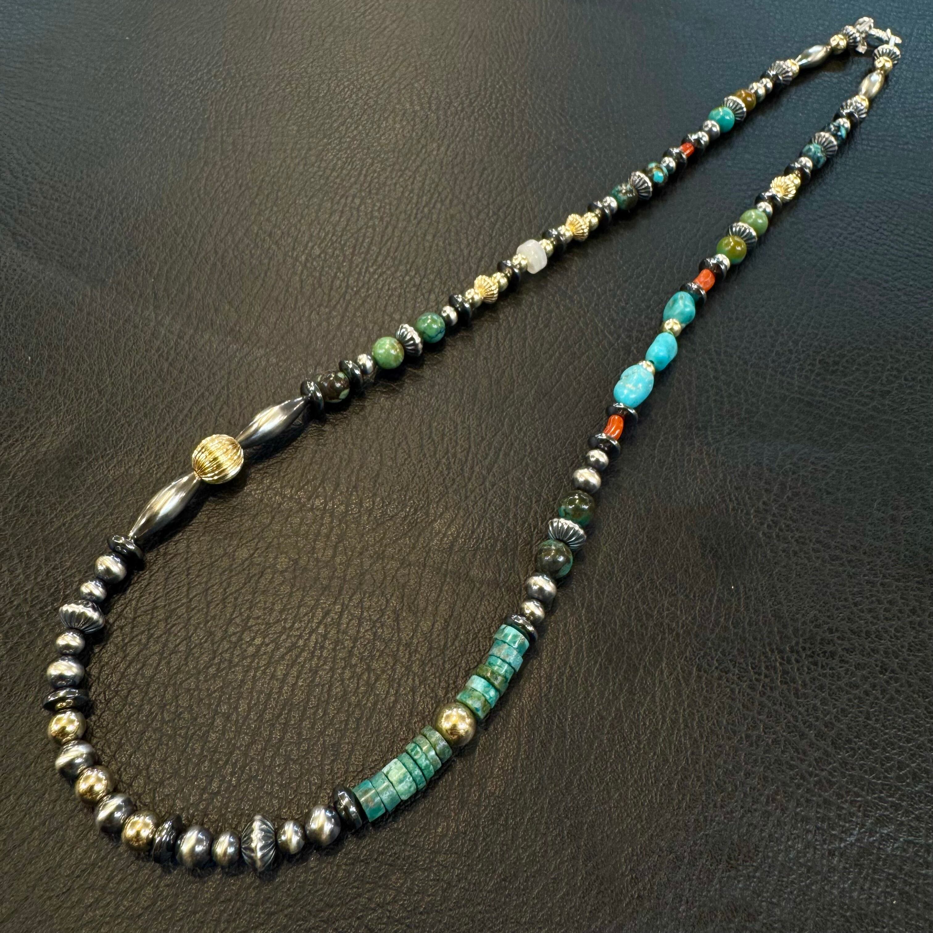 ナバホパールに、シルバービーズ、ターコイズビーズ、コーラルビーズ