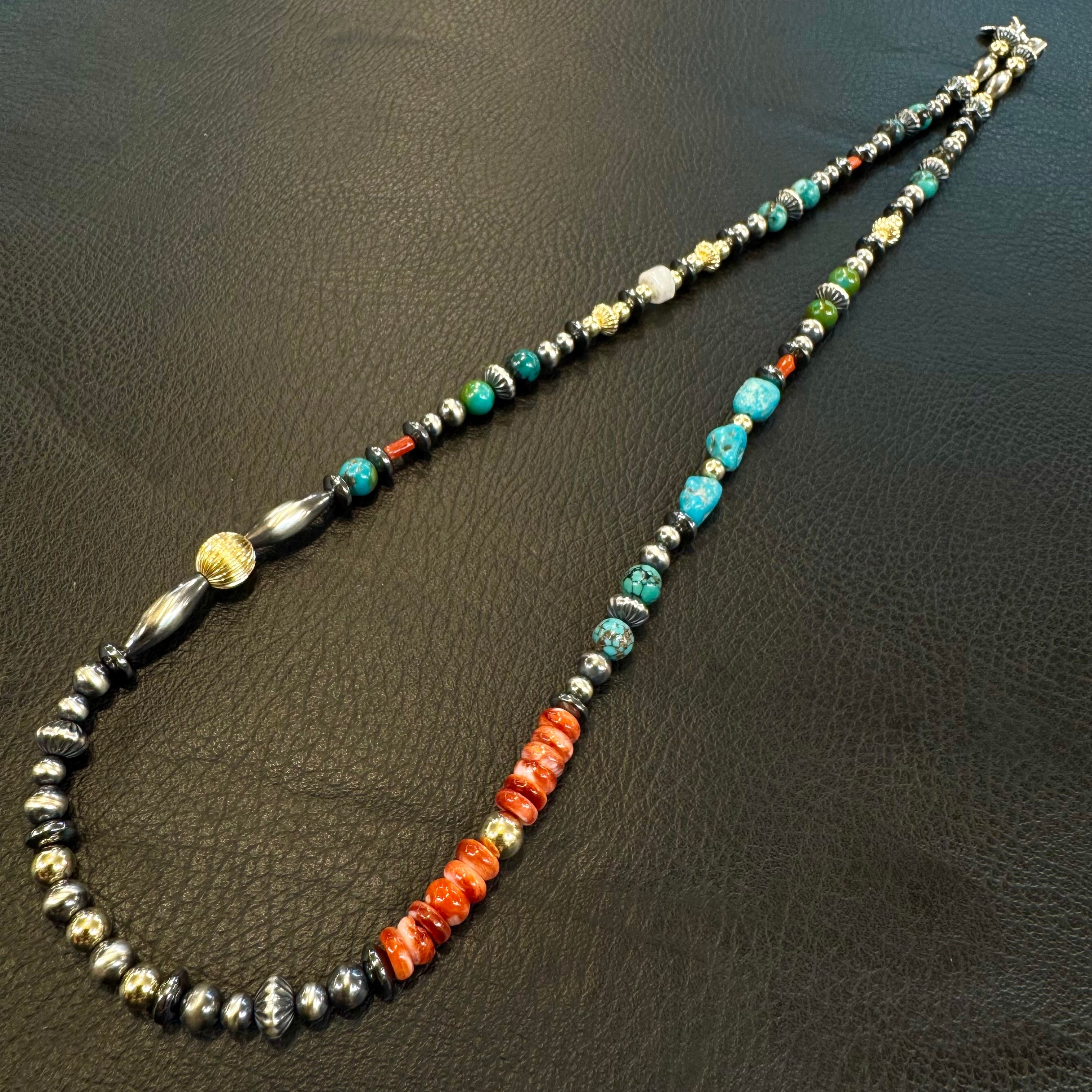 ナバホパールに、シルバービーズ、ターコイズビーズ、コーラルビーズ